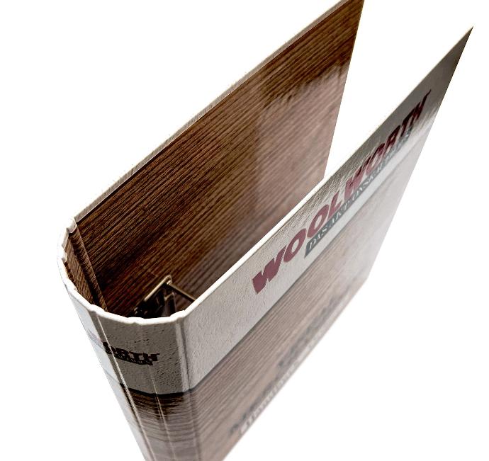 Elegáns gyűrűs iratrendezőket gyártunk a legkülönfélébb kialakításokkal. Itt tokos iratrendezővel és gyűrűs mechanikával a belső borítón .